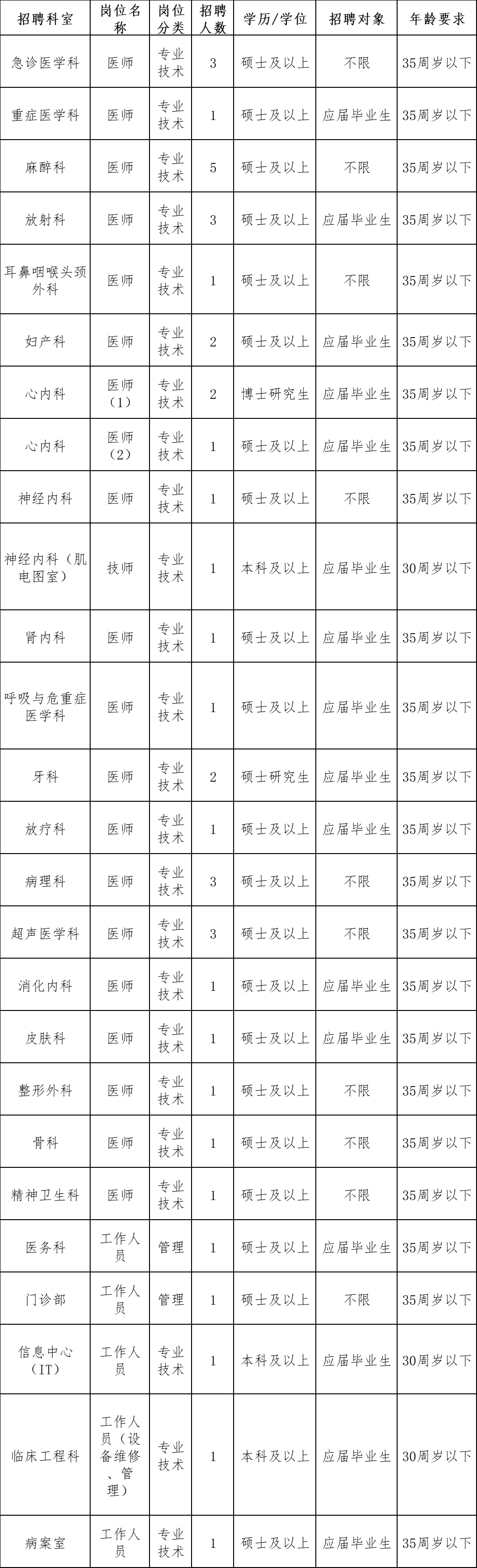 1.重癥醫(yī)學科醫(yī)師等16個崗位面向普通高校2023年應屆畢業(yè)生(同期完成學業(yè)并取得國(境)外學歷、學位認證的留學人員、未簽訂就業(yè)協(xié)議的2022年畢業(yè)生可視同對待);