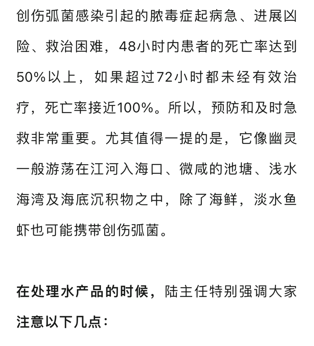 如果皮膚本身有傷口,盡量避免處理水產品,甚至不要到江河湖海中戲水;