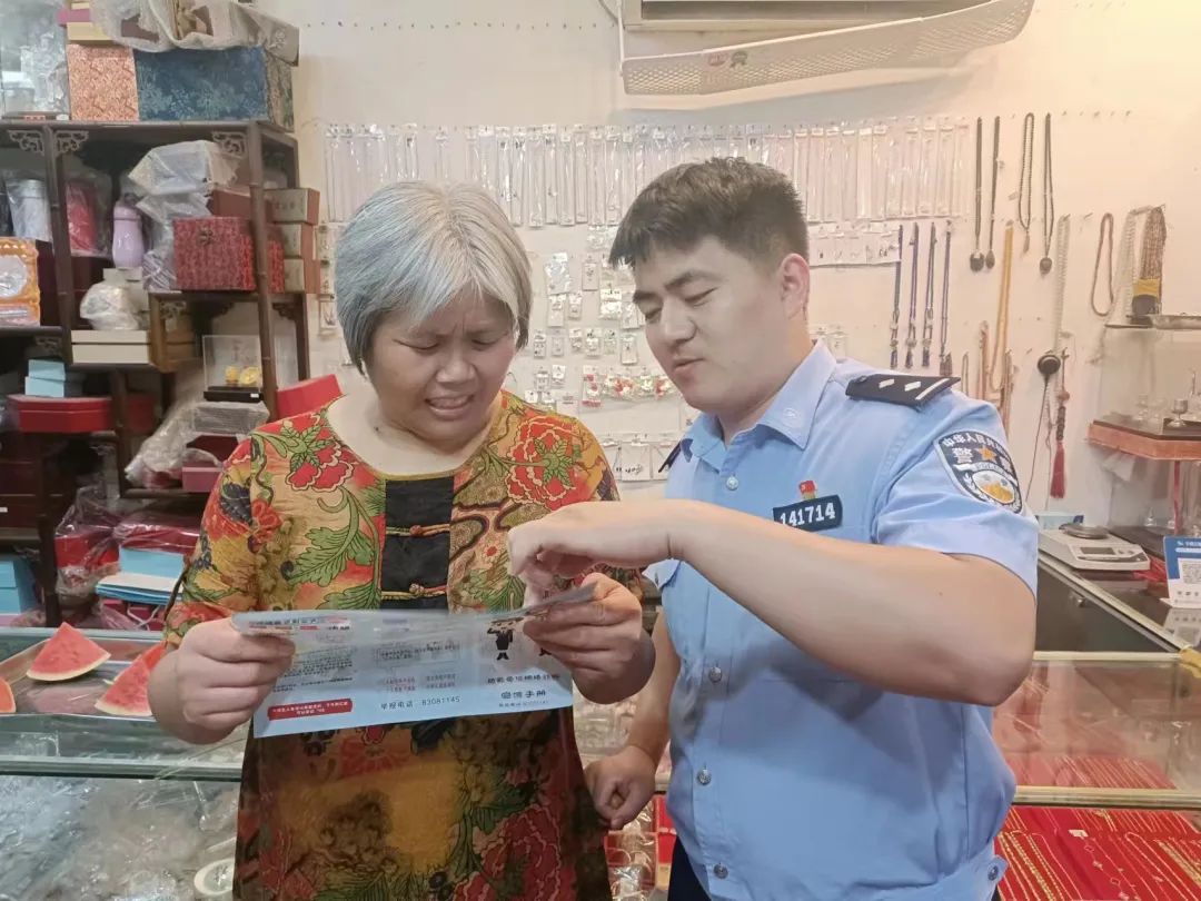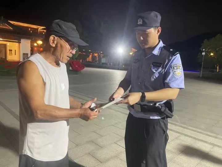 “你們好,我們是崇仁派出所的,你們是來(lái)崇仁古鎮(zhèn)游玩的嗎,這些是防范電信詐騙的資料……”熱火朝天的夜生活和旅游景點(diǎn)背后,少不了嵊州公安民警忙碌的身影。