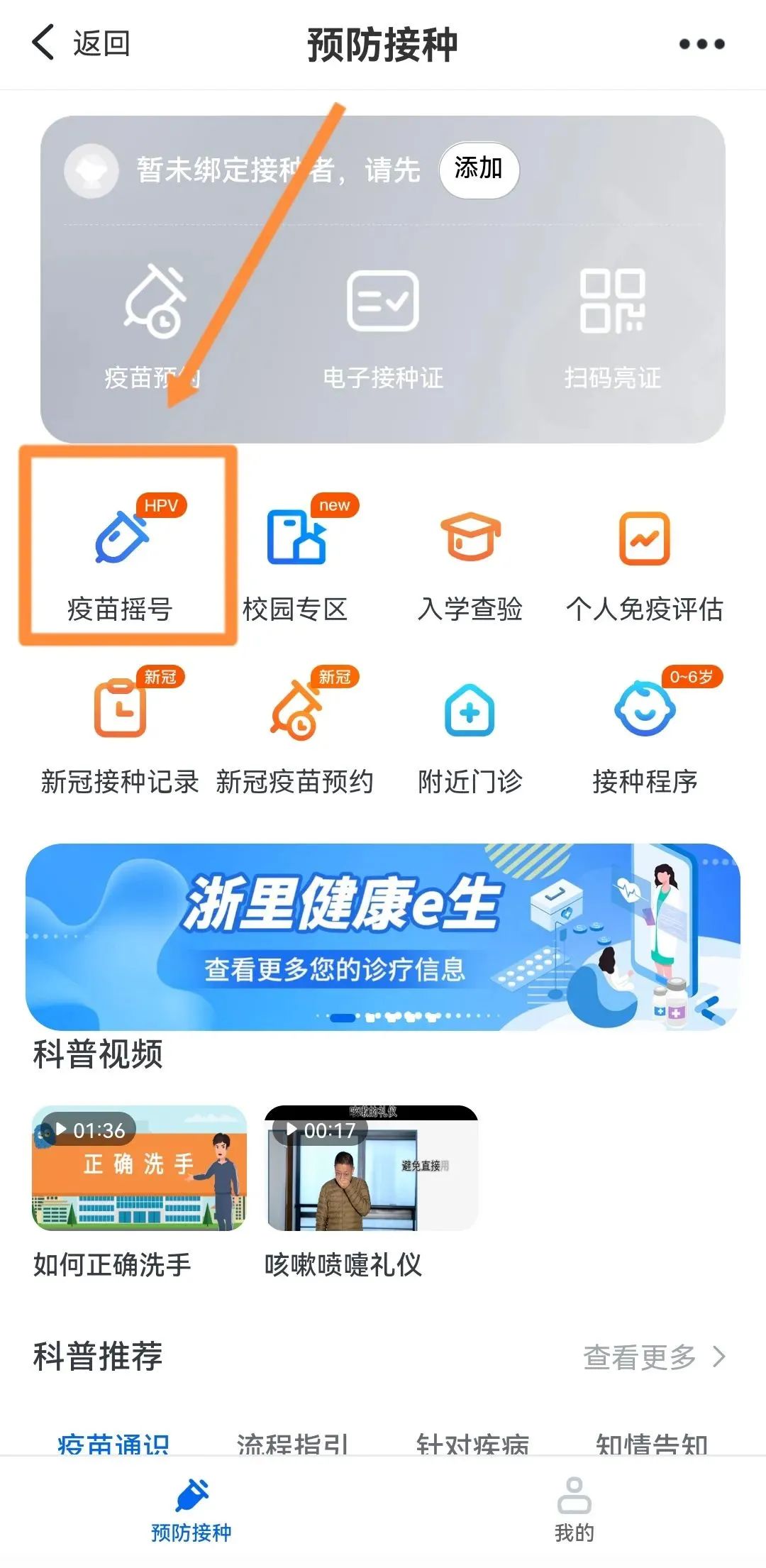 3、輸入【預(yù)防接種】,點(diǎn)擊【預(yù)防接種】欄目