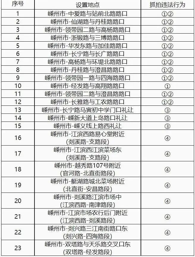 具體設(shè)置點(diǎn)位及抓拍違法行為:
