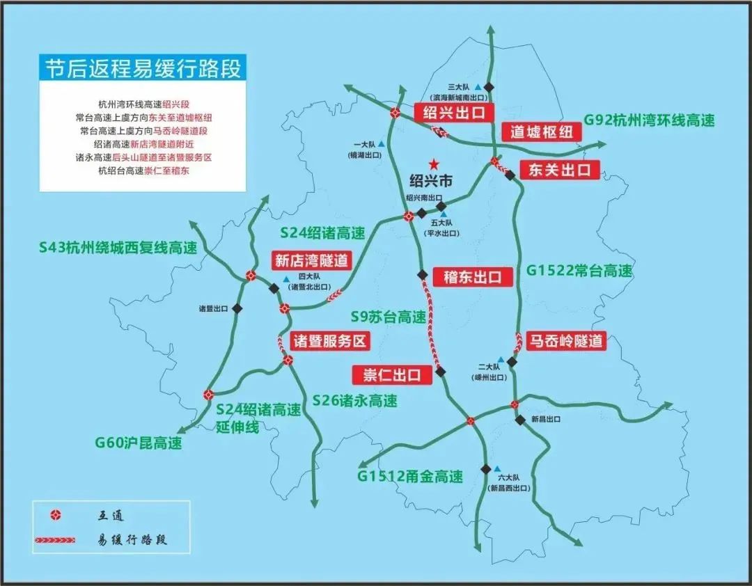 4、S26諸永高速諸暨服務(wù)區(qū)至后頭山隧道段發(fā)生緩行時(shí),提早從G60滬昆高速、S24紹諸高速延伸線繞行。