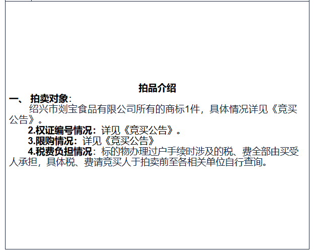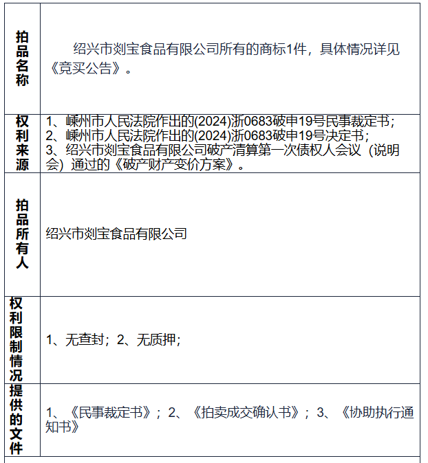 https://susong.taobao.com/)上對(duì)紹興市剡寶食品有限公司的所需拍賣的資產(chǎn)進(jìn)行第一次公開拍賣活動(dòng),現(xiàn)公告如下: