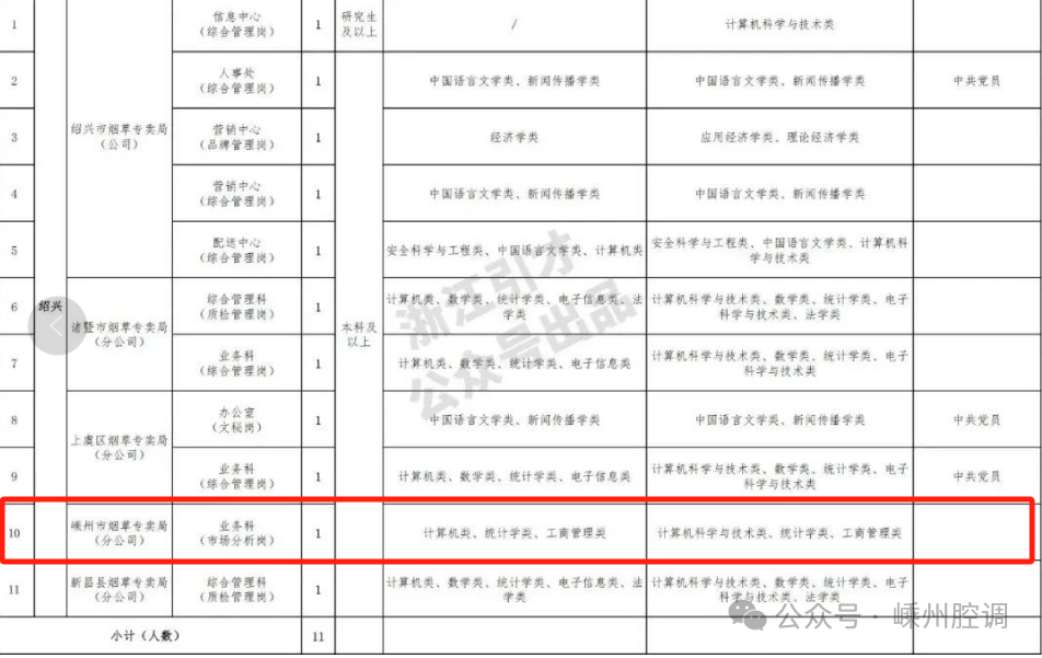 因工作需要,浙江省煙草專賣局(公司)計劃開展2025年度全省系統(tǒng)管理類崗位公開招聘。現(xiàn)將有關(guān)事項公告如下: