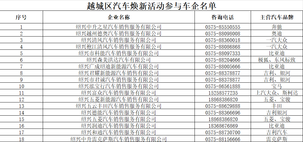 活動期間,在越城區(qū)(斗門、馬山、孫端、瀝海四個街道除外)參與活動的汽車銷售企業(yè)購買新乘用車的個人消費者。其中乘用車是指符合公安部《道路交通管理機(jī)動車類型》中機(jī)動車規(guī)格分類表規(guī)定的小型、微型載客汽車,登記注冊地須為紹興。