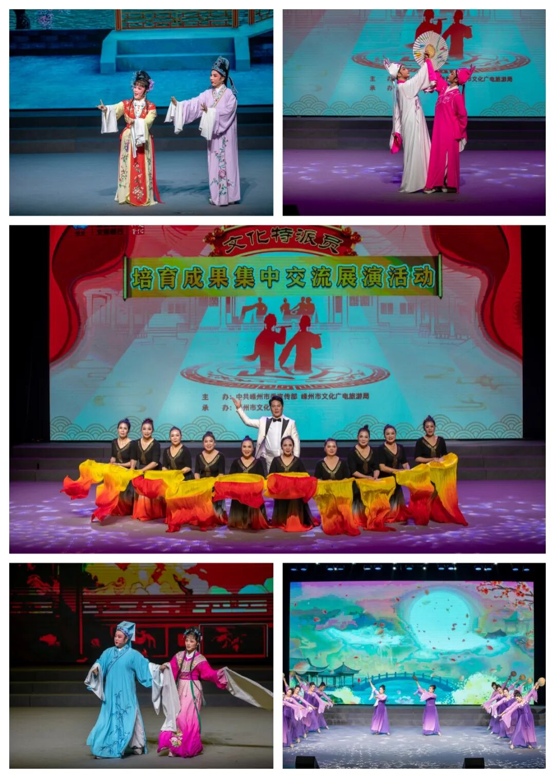 12月30日晚,文化館里燈火璀璨、座無虛席,嵊州市文化特派員培育成果集中交流展演在此拉開序幕。首場演出展示了各鄉(xiāng)鎮(zhèn)(街道)推薦的15個優(yōu)秀節(jié)目,崇仁鎮(zhèn)把家鄉(xiāng)特產(chǎn)美食編進(jìn)了舞蹈,嵊州榨面成了舞者手中搖曳的扇子;剡湖街道的越劇《梁?!な讼嗨汀反蚱埔蝗艘唤堑膫鹘y(tǒng)演,五對梁山伯和祝英臺同演經(jīng)典選段;黃澤鎮(zhèn)大鼓擂動、甩繩騰空、燈籠映紅,玩出了新花樣,一場場精彩的表演、飽滿的情感贏得現(xiàn)場陣陣掌聲。