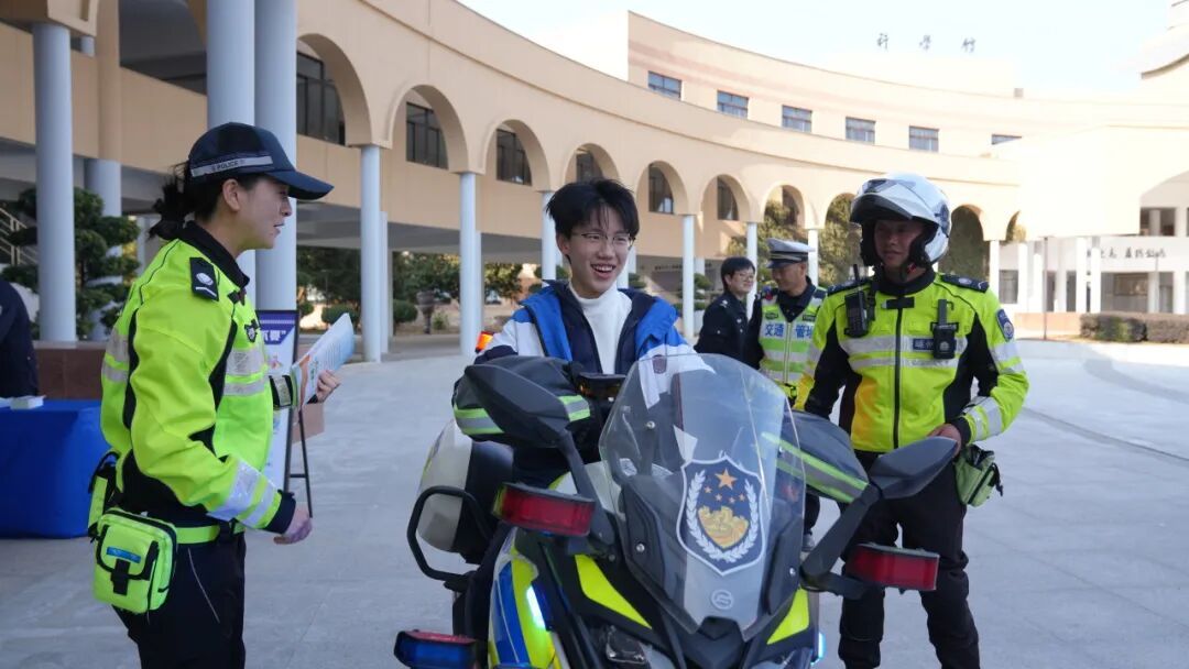 對(duì)著圍觀的同學(xué)科普著交通知識(shí)