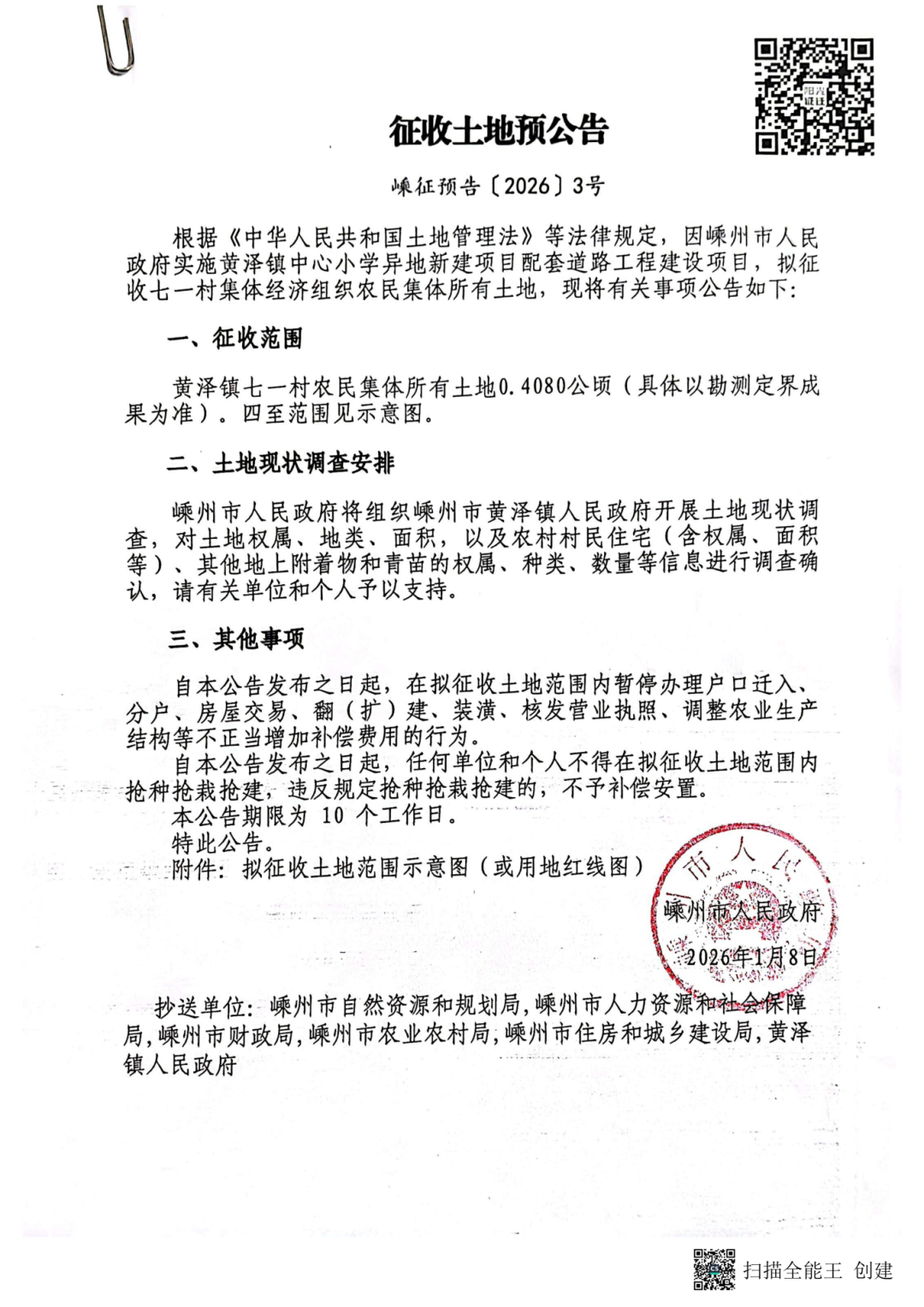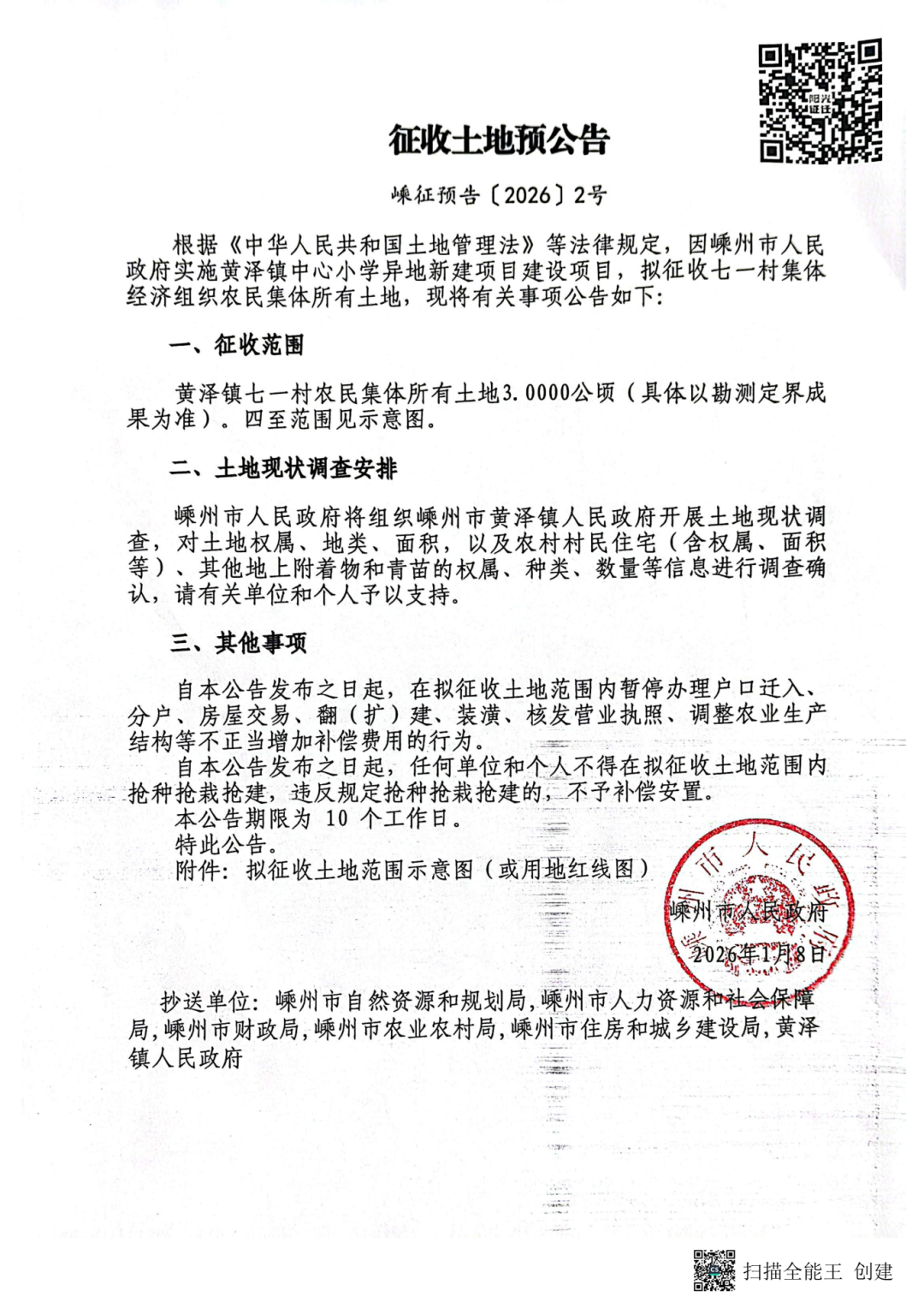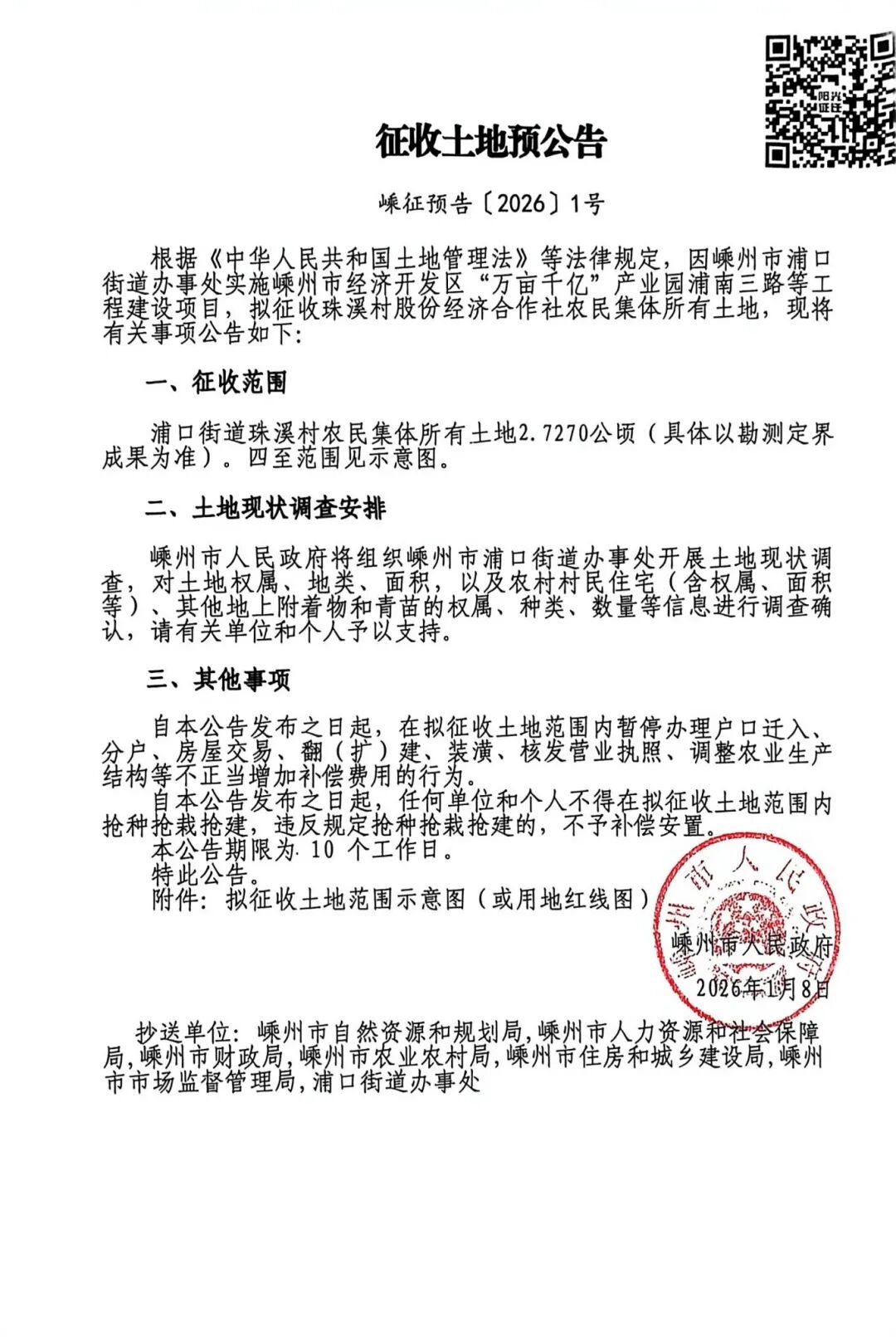 近日,嵊州市人民政府官方網(wǎng)站發(fā)布多則征收土地預(yù)公告,其中兩則分別涉及浦口街道珠溪村與黃澤鎮(zhèn)七一村的相關(guān)地塊。根據(jù)公告內(nèi)容,浦口街道珠溪村擬征收土地用于嵊州市經(jīng)濟(jì)開發(fā)區(qū)“萬畝千億”產(chǎn)業(yè)園建設(shè);黃澤鎮(zhèn)七一村擬征收土地則用于黃澤鎮(zhèn)中心小學(xué)異地新建項(xiàng)目。具體公告內(nèi)容如下: