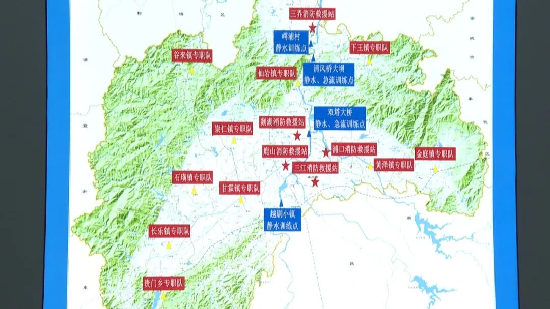 一幅巨大的嵊州市水系分布圖,不僅標注了全市主要河流湖泊的分布,更是成為消防救援人員掌握轄區(qū)水域情況的“作戰(zhàn)沙盤”。