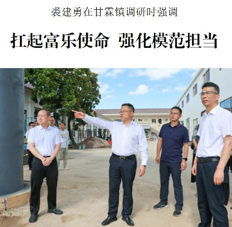 7月1日上午,市委書(shū)記裘建勇赴甘霖鎮(zhèn)調(diào)研。他強(qiáng)調(diào),要始終牢記習(xí)近平總書(shū)記來(lái)嵊調(diào)研時(shí)的殷殷囑托,堅(jiān)決扛起富樂(lè)使命,強(qiáng)化模范擔(dān)當(dāng),全力以赴推動(dòng)各項(xiàng)事業(yè)再上新臺(tái)階,為全市經(jīng)濟(jì)社會(huì)高質(zhì)量發(fā)展作出更大貢獻(xiàn)。市委